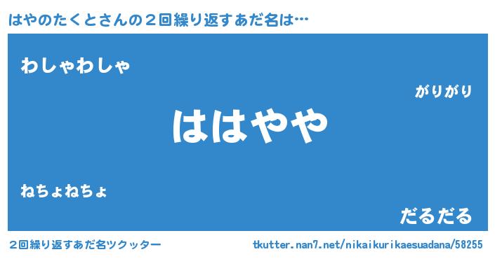 | 意味不明あだ名 | 『はやのたくとフォーエバー』 |