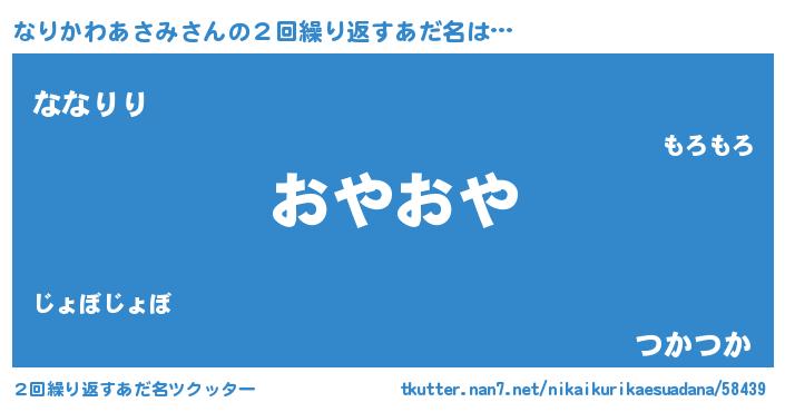 | 意味不明あだ名 | 『とにかく怪しいなりかわあさみ』 |