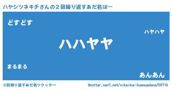 | 欧米人風あだ名 | 『ハヤシツネキチクリステル』 |