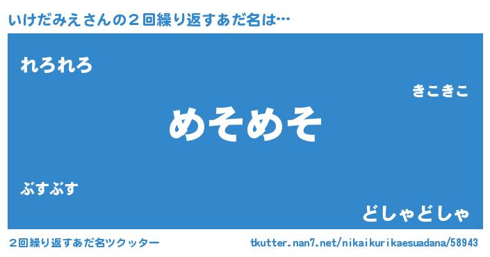 | 意味不明あだ名 | 『自称いけだみえ』『永久保存いけだみえ』 |
