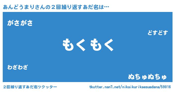 | 男性向けラノベタイトル風あだ名 | 『Re:あんどうまりから始める異世界生活』 |