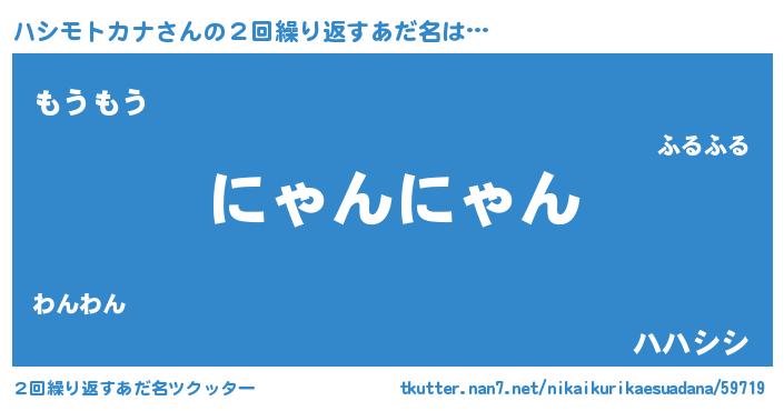 | 男性向けラノベタイトル風あだ名 | 『ハシモトカナの嫁は女の子じゃないと思った?』 |