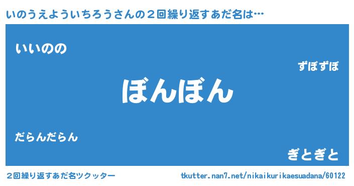 | 意味不明あだ名 | 『眠気覚ましガムいのうえよういちろう味』 |