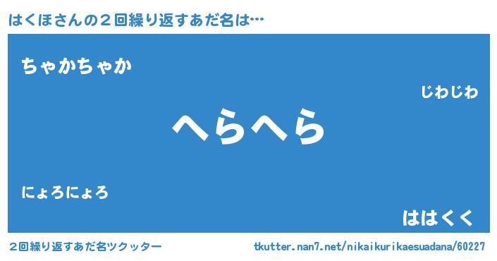 | 欧米人風あだ名 | 『アンジェラ・はくほ』『ダニエルはくほ』 |