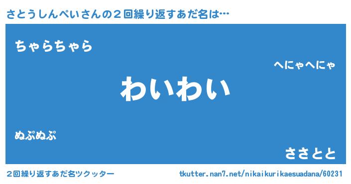 | 欧米人風あだ名 | 『トリンドルさとうしんぺい』 |