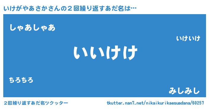| 意味不明あだ名 | 『いけがやあさかフォーエバー』 |