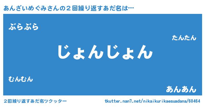 | ヘコむあだ名 | 『あんもー』『あんざいめぐみ(遠い目)』 |