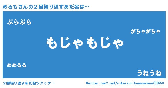 | 男性向けラノベタイトル風あだ名 | 『Re:めるもから始める異世界生活』 |