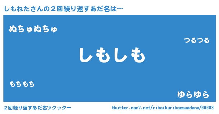 | 男性向けラノベタイトル風あだ名 | 『しもねたの憂鬱』『シモネタスレイヤー』 |