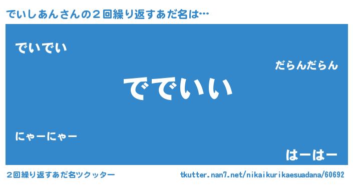 | 意味不明あだ名 | 『でいしあんフォーエバー』 |