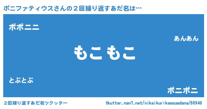 | ポケモン風あだ名 | 『ポニセウス』『ポニフダネ』 |
