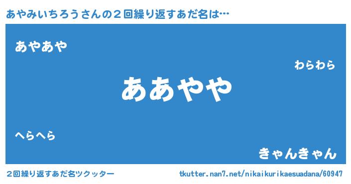 | 意味不明あだ名 | 『あやみいちろうフォーエバー』 |