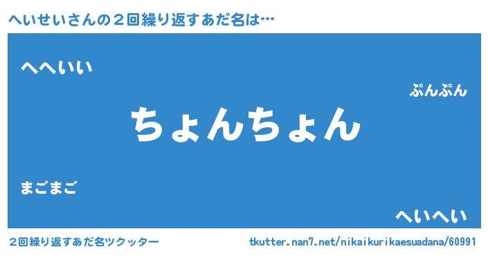 | 意味不明あだ名 | 『へいせいフォーエバー』『自称へいせい』 |