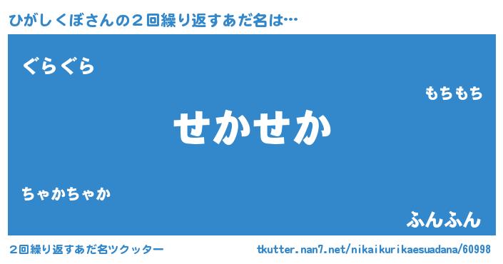 | 男性向けラノベタイトル風あだ名 | 『この素晴らしい世界にひがしくぼを!』 |