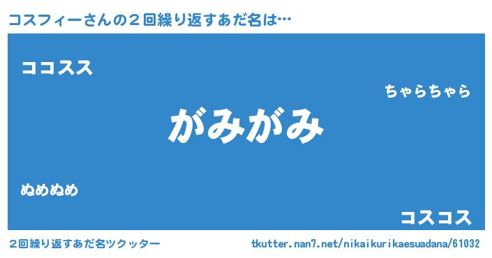 | 意味不明あだ名 | 『永久保存コスフィー』 |
