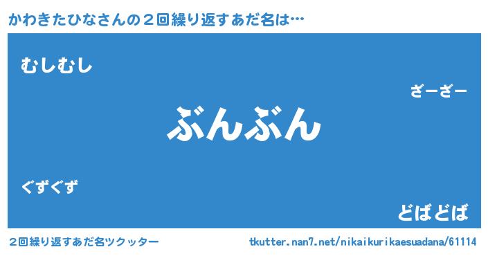 | ヘコむあだ名 | 『かわきたひな(苦笑)』『かわにゅー』 |