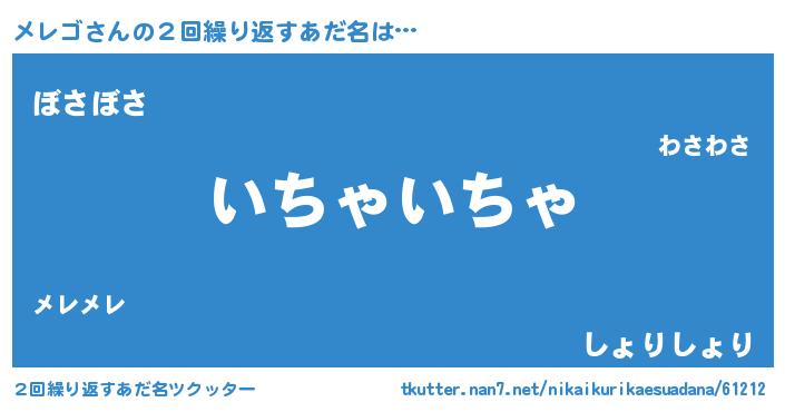 | 胡散臭い通販商品みたいなあだ名 | 『信頼と実績のサプリメント…その名も「メレゴ」』 |