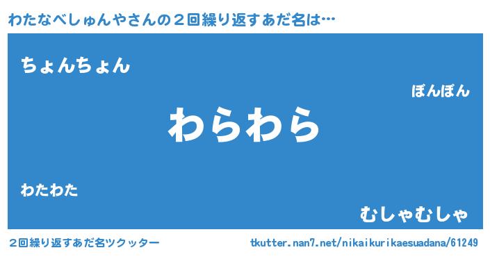| 意味不明あだ名 | 『ニラ科わたなべしゅんや属』 |