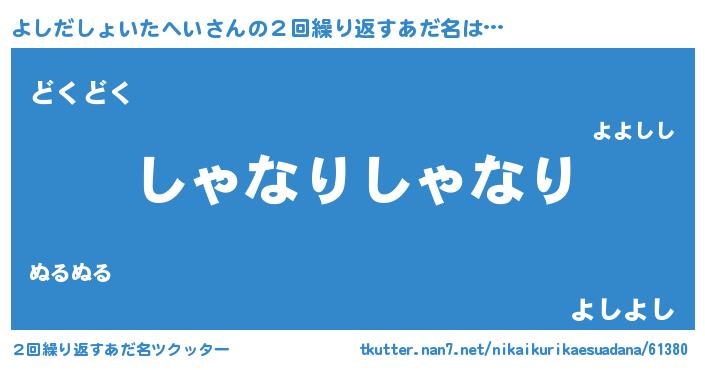 | 意味不明あだ名 | 『住所不定無職よしだしょいたへい(59歳)』 |