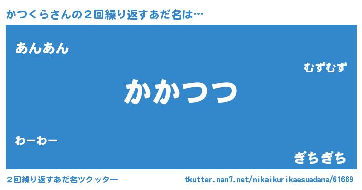 | ヒーロー風カッコイイあだ名 | 『ウルトラかつくらマン』『黄金騎士カツ』 |