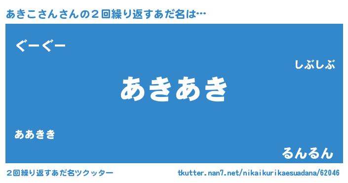 | ヘコむあだ名 | 『あきもー』『あきこさん(苦笑)』 |