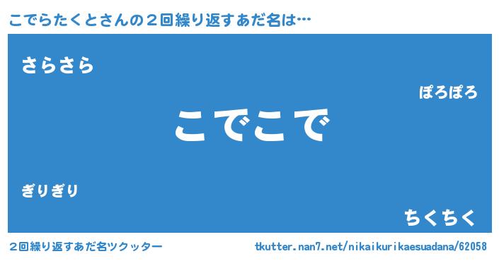 | ヘコむあだ名 | 『こでもー』『こでらたくと(笑)』 |