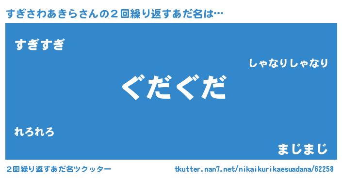 | ヘコむあだ名 | 『すぎさわあきら(笑)』『すぎにー』 |