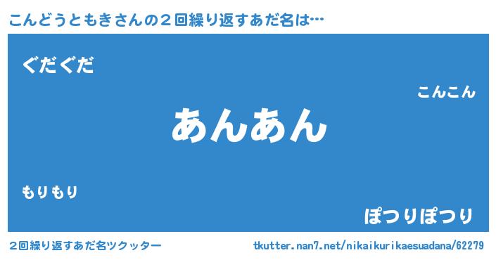 | ヘコむあだ名 | 『こんぷりん』『こんどうともき(笑)』 |