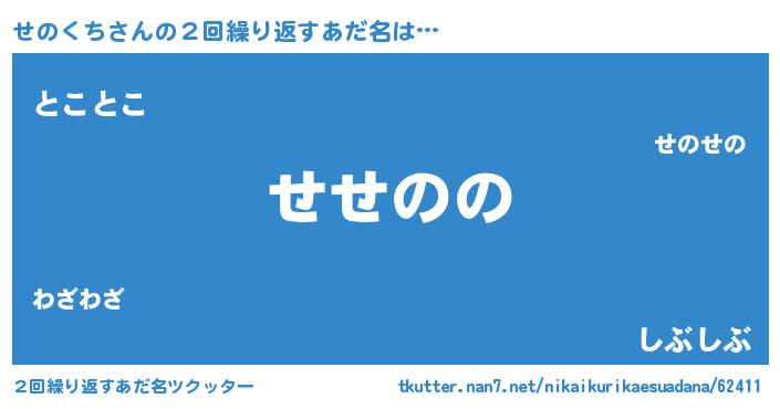 | 欧米人風あだ名 | 『せのくちクリステル』 |