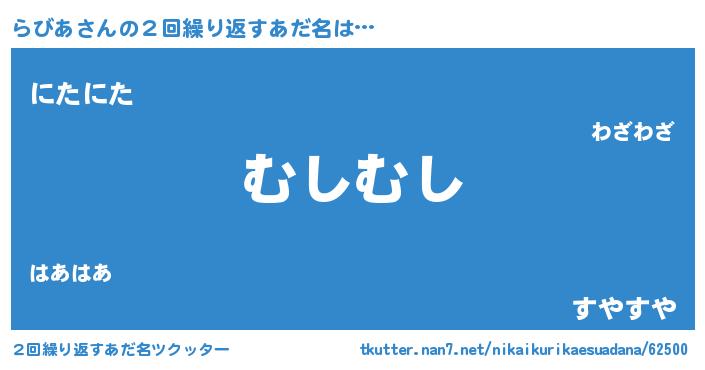 | 意味不明あだ名 | 『自称らびあ』『とにかく怪しいらびあ』 |