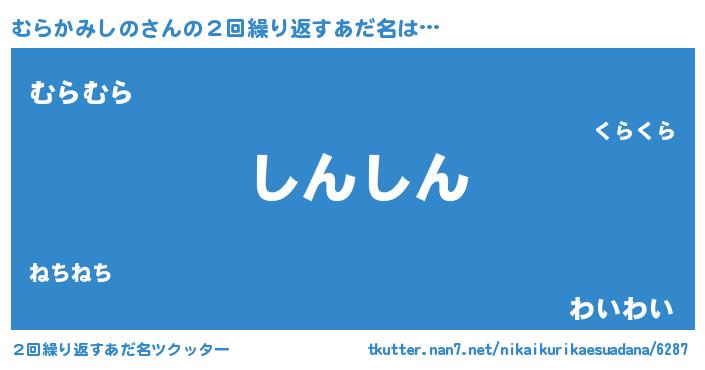 | 女子向けラノベタイトル風あだ名 | 『乙女ゲームの破滅フラグしかない悪役むらかみしのに転生してしまった…』 |