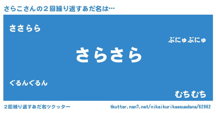| 意味不明あだ名 | 『ペロリンさらこ』『さらこフォーエバー』 |