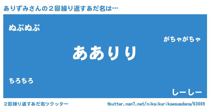 | 意味不明あだ名 | 『ありずみフォーエバー』 |