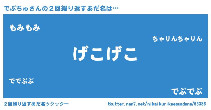 | 意味不明あだ名 | 『永久保存でぶちゅ』『自称でぶちゅ』 |