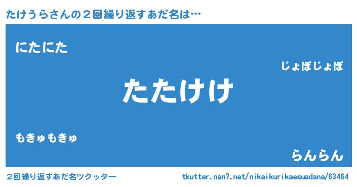 | ポケモン風あだ名 | 『タケウダネ』『ヒタケウラ』 |