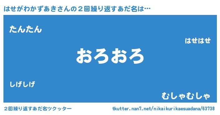 | 女子向けラノベタイトル風あだ名 | 『はせがわかずあきの卵を拾いまして』 |
