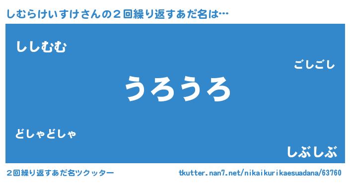 | 欧米人風あだ名 | 『ウサインしむらけいすけ』 |