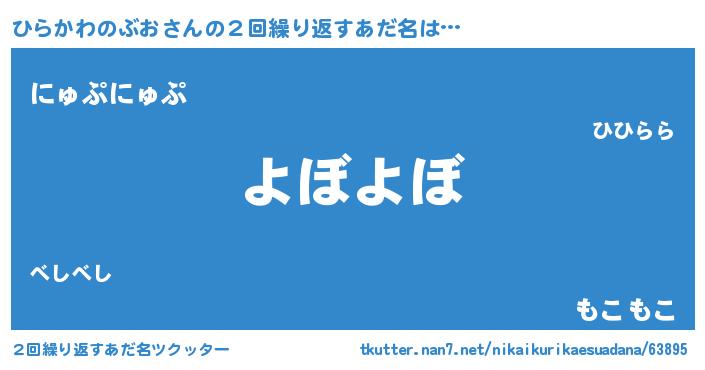 | 料理風あだ名 | 『ひらかわのぶおごはん』 |