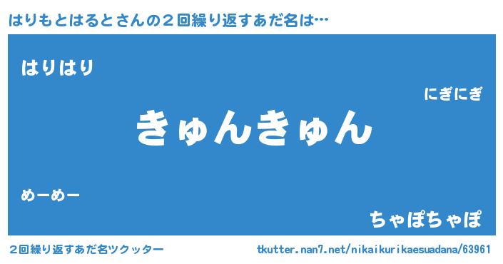 | 意味不明あだ名 | 『永久保存はりもとはると』 |