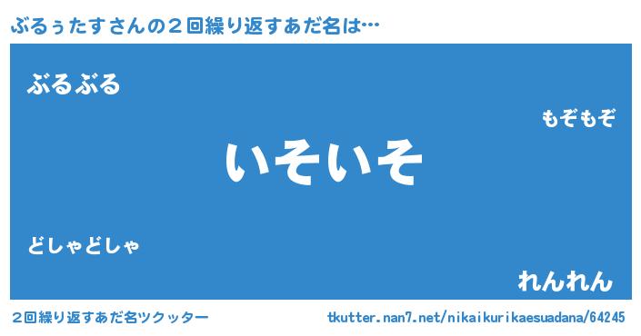 | 胡散臭い通販商品みたいなあだ名 | 『信頼と実績のサプリメント…その名も「ぶるぅたす」』 |