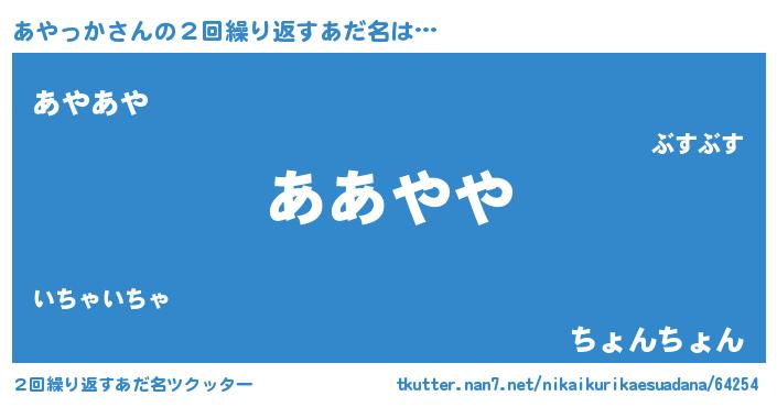 | 意味不明あだ名 | 『あやっかフォーエバー』 |