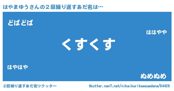 | 意味不明あだ名 | 『永久保存はやまゆう』『自称はやまゆう』 |