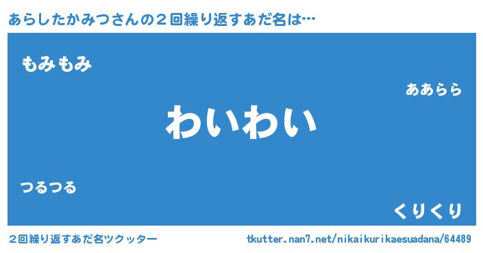| 男性向けラノベタイトル風あだ名 | 『転生したらあらしたかみつだった件』 |