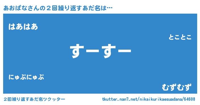 | 意味不明あだ名 | 『住所不定無職あおばな(98歳)』 |