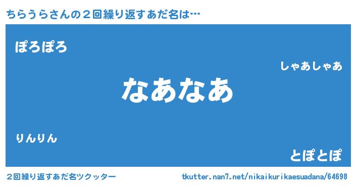| ヘコむあだ名 | 『ちらを』『ちらっふぃ~』 |