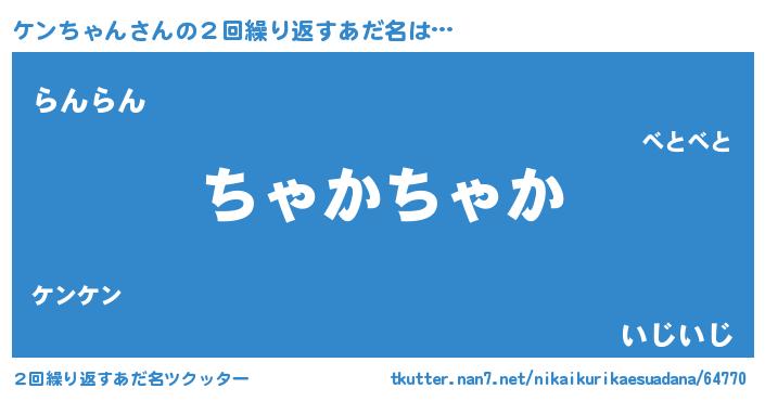 | ヘコむあだ名 | 『ケンぷりん』『ケンにゅー』 |