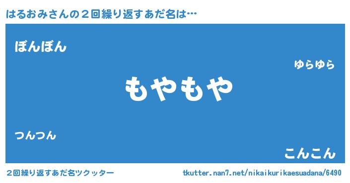 | 男性向けラノベタイトル風あだ名 | 『Re:はるおみから始める異世界生活』 |
