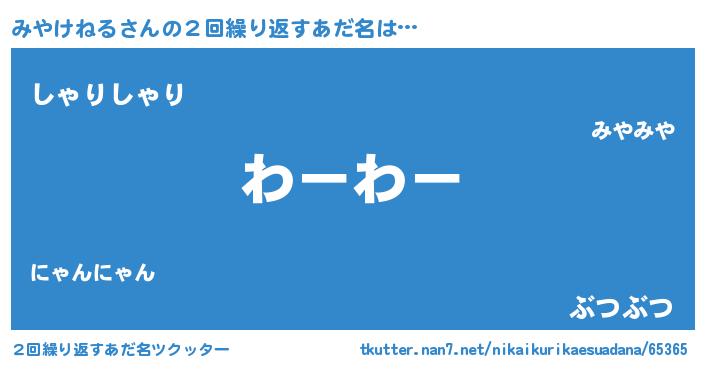 | 料理風あだ名 | 『みやけねるごはん』 |