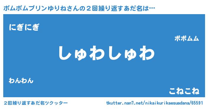 | 欧米人風あだ名 | 『ダレノガレポムポムプリンゆりね』 |