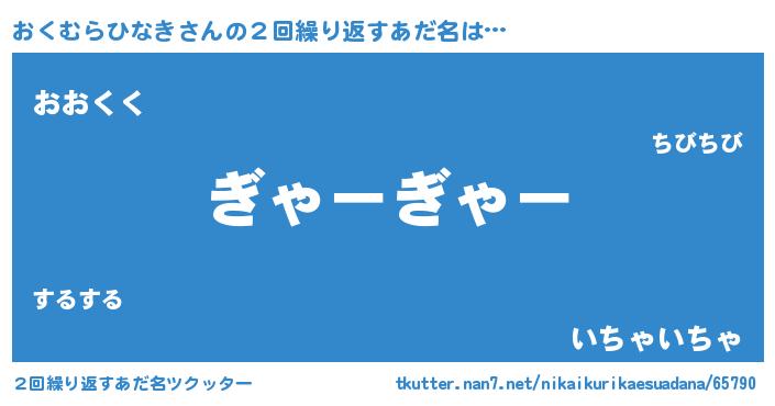 | 欧米人風あだ名 | 『アンジェラ・おくむらひなき』 |